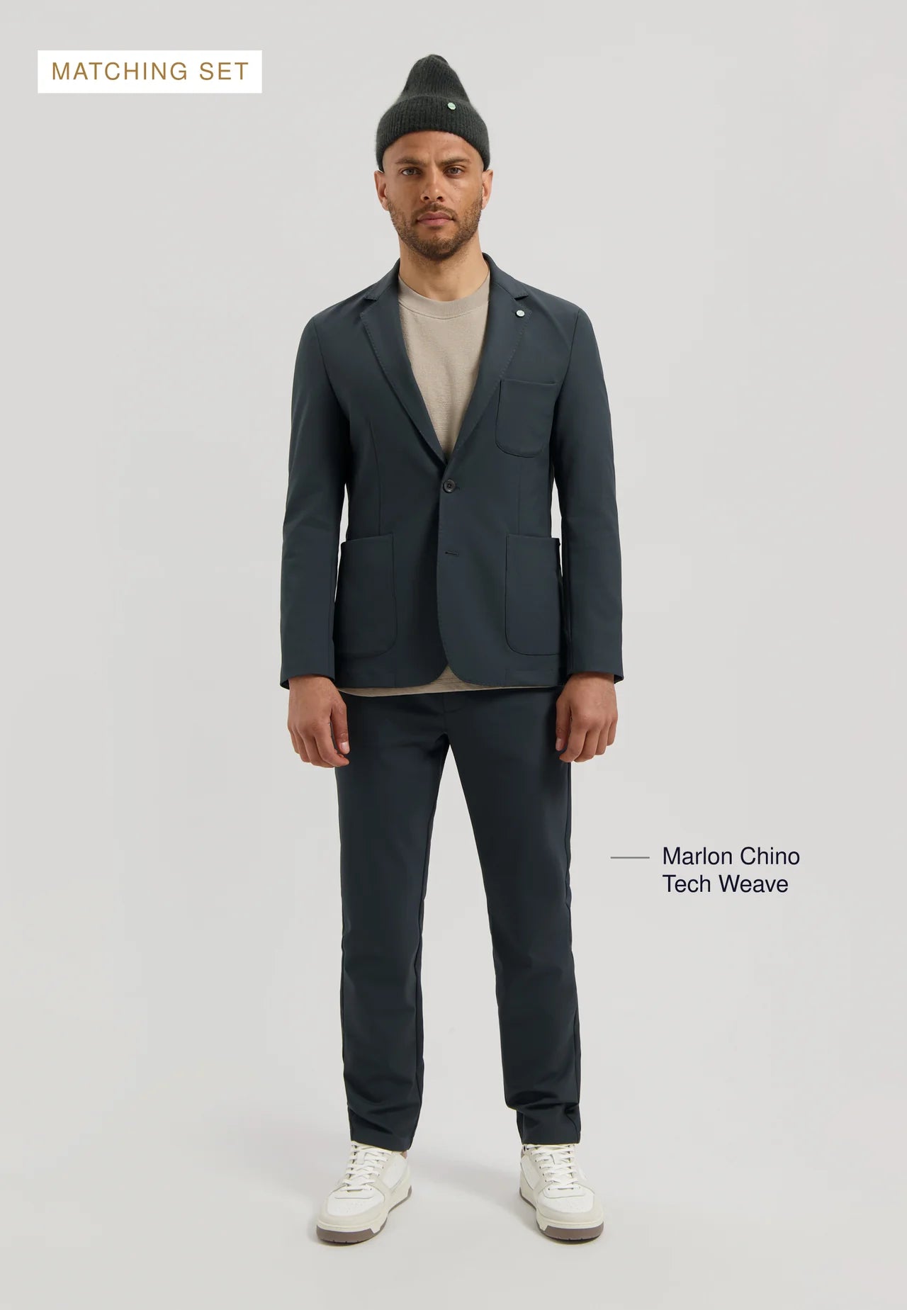 Meet the Norris Blazer Tech Weave—sharp looks meet next-level comfort. Made from bi-stretch tech fabric, it stretches both ways for extra freedom of movement without losing shape. The dull finish gives it a clean, modern edge, and it’s unlined for a lightweight feel. Pair it with the matching Marlon Chino Tech Weave for a full smart-meets-functional look.
