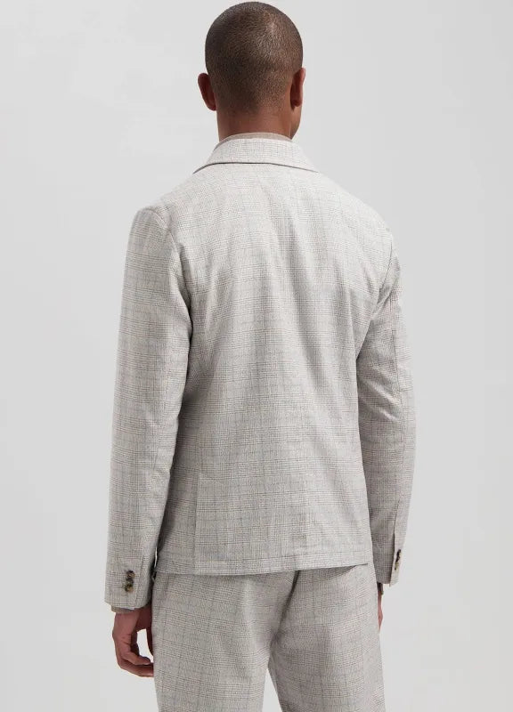 Daringly stand out from the crowd this Spring/Summer with the Rhys Double-Breasted Blazer in blurry check fabric from DSTREZZED, Amsterdam.   Offering comfortable stretch the blazer is unlined with chambray details inside.