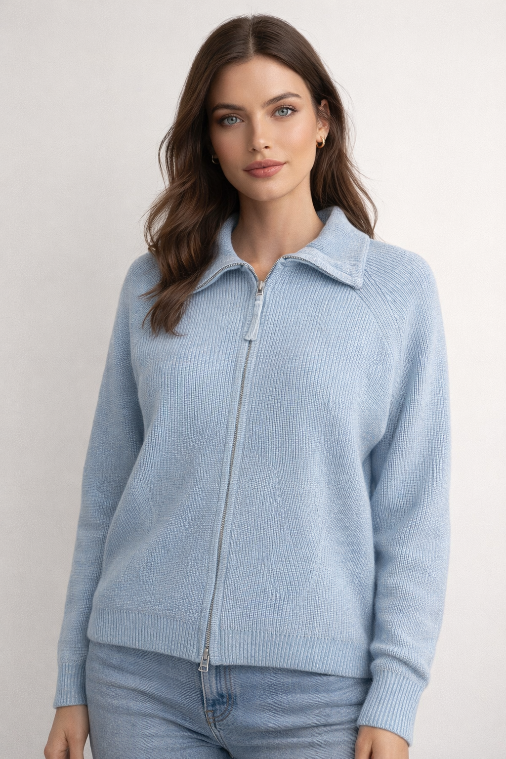 Merino/ Cotton Collar Full Zip Light Weight Jacket