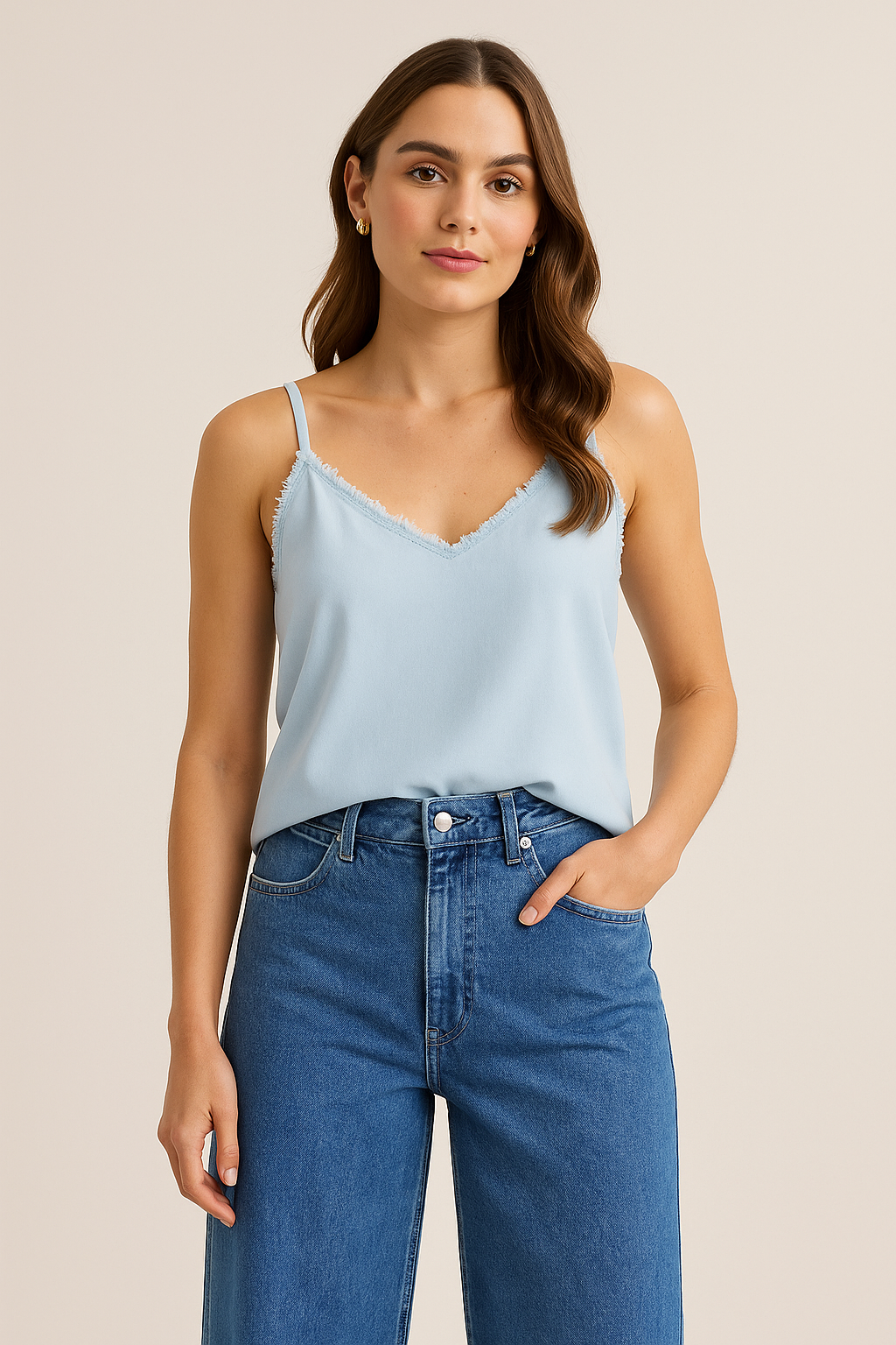 Our frayed cami is a perfect everyday versatile top. It features adjustable straps, a frayed neckline, and relaxed fit. It is an essential and perfect layering piece. Pair it with jeans tucked in or untucked for a more effortless look.