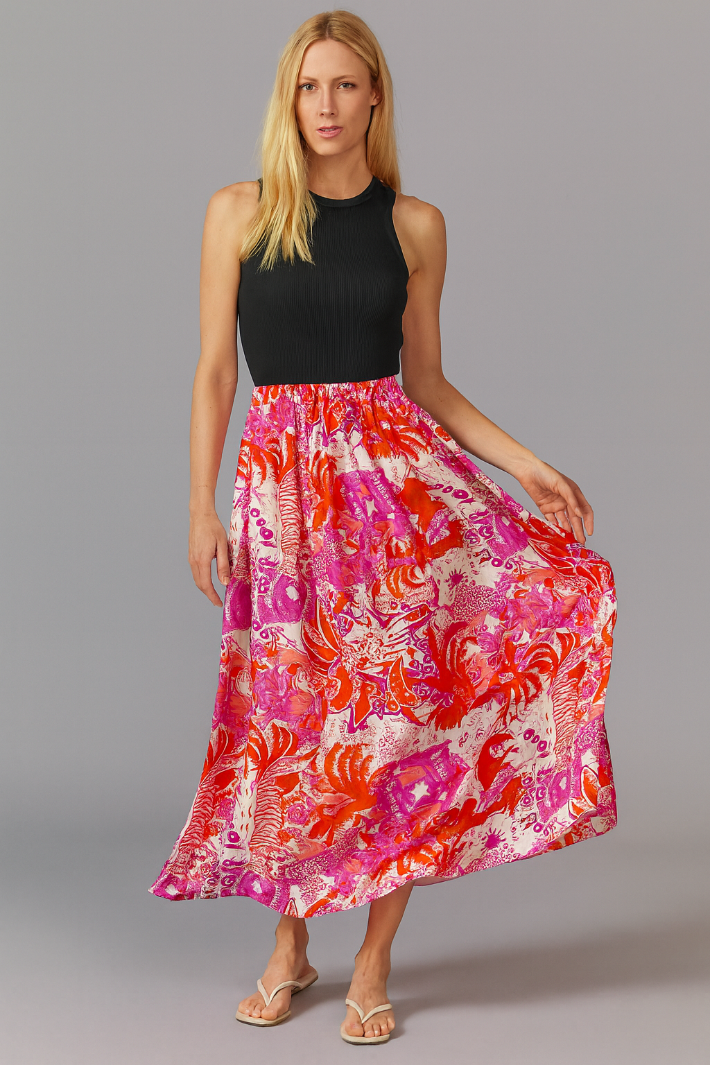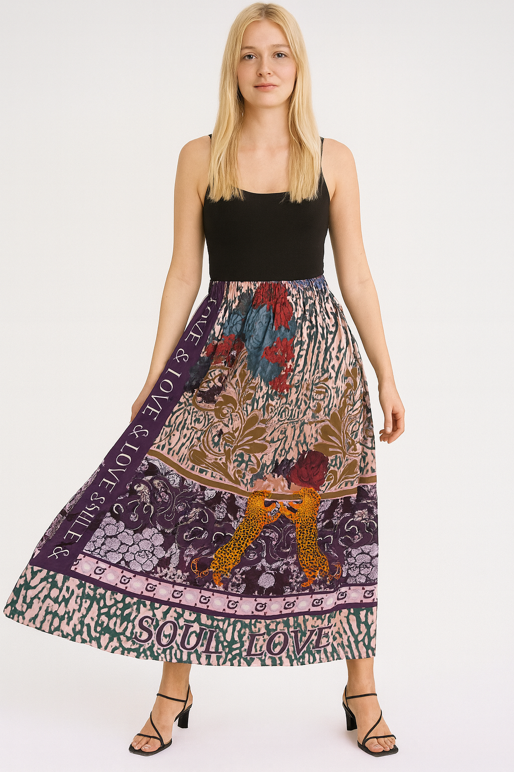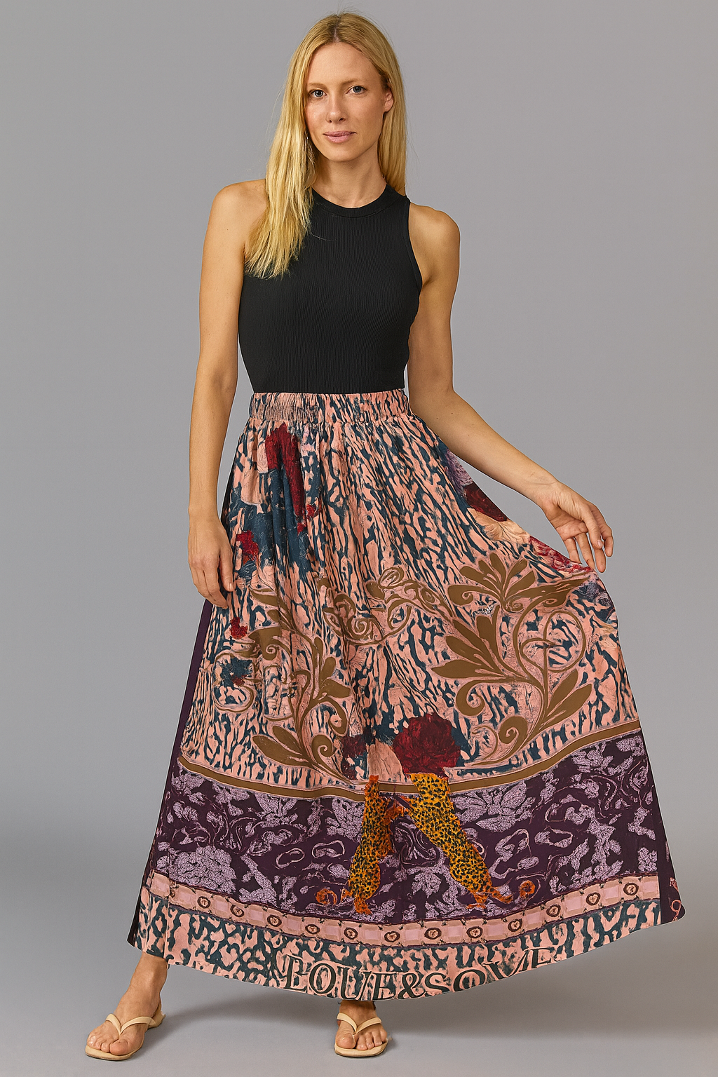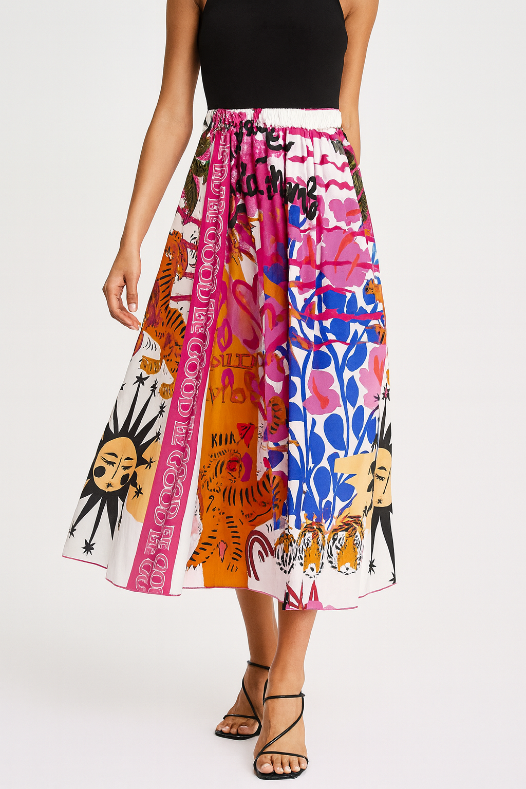 RICH & ROYAL FLORAL HIGH-WAISTED MIDI SKIRT