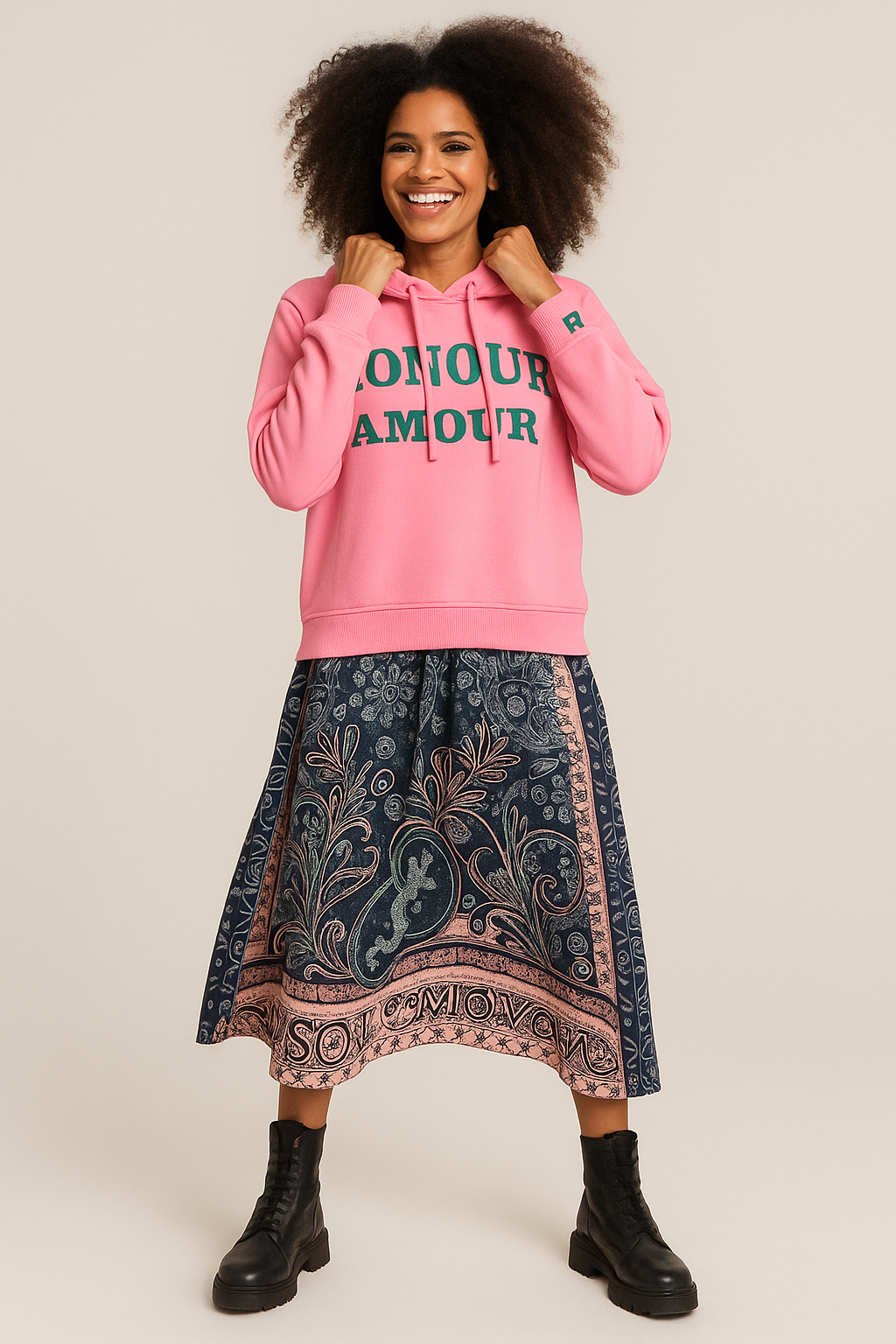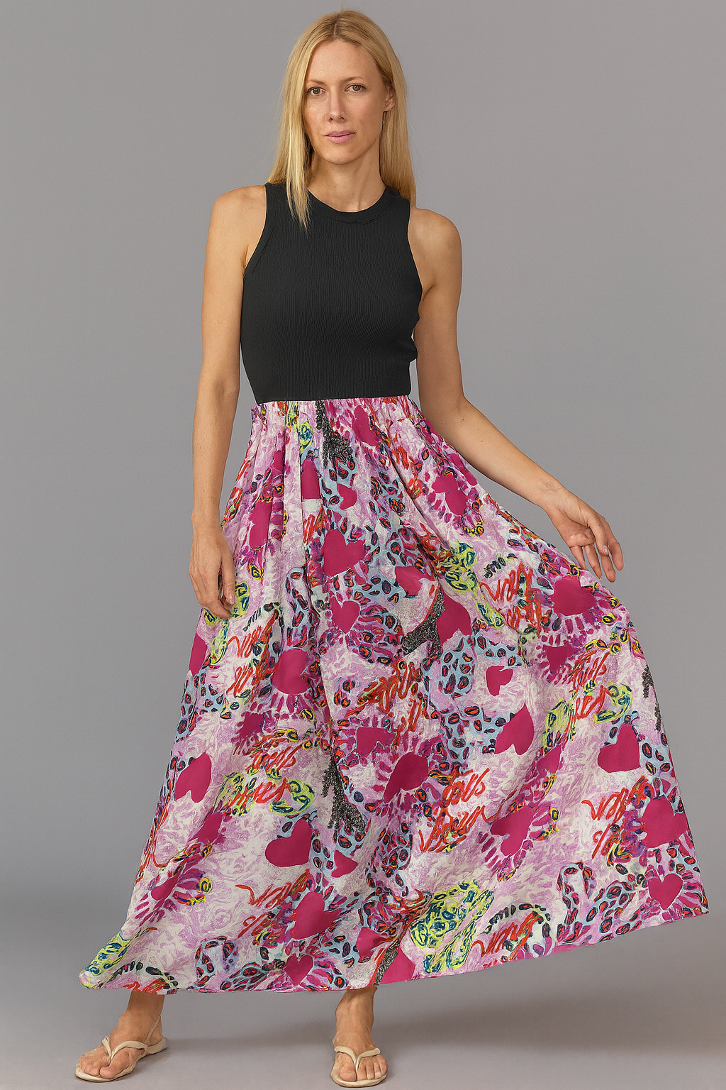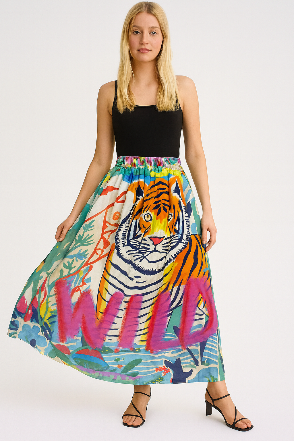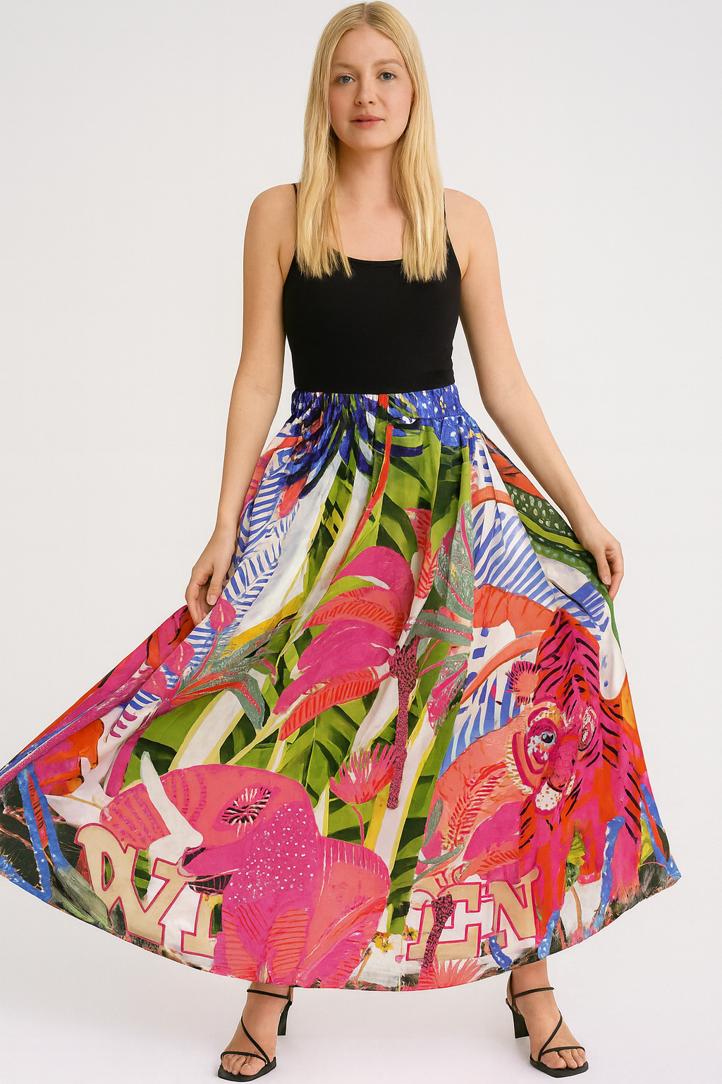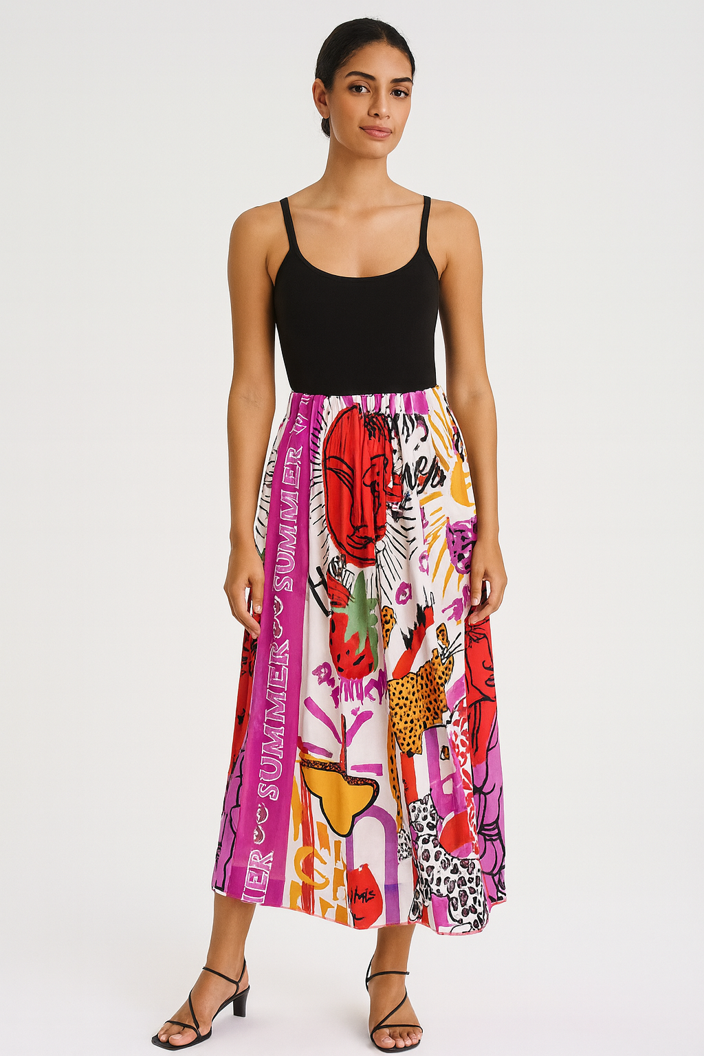 RICH & ROYAL FLORAL HIGH-WAISTED MIDI SKIRT