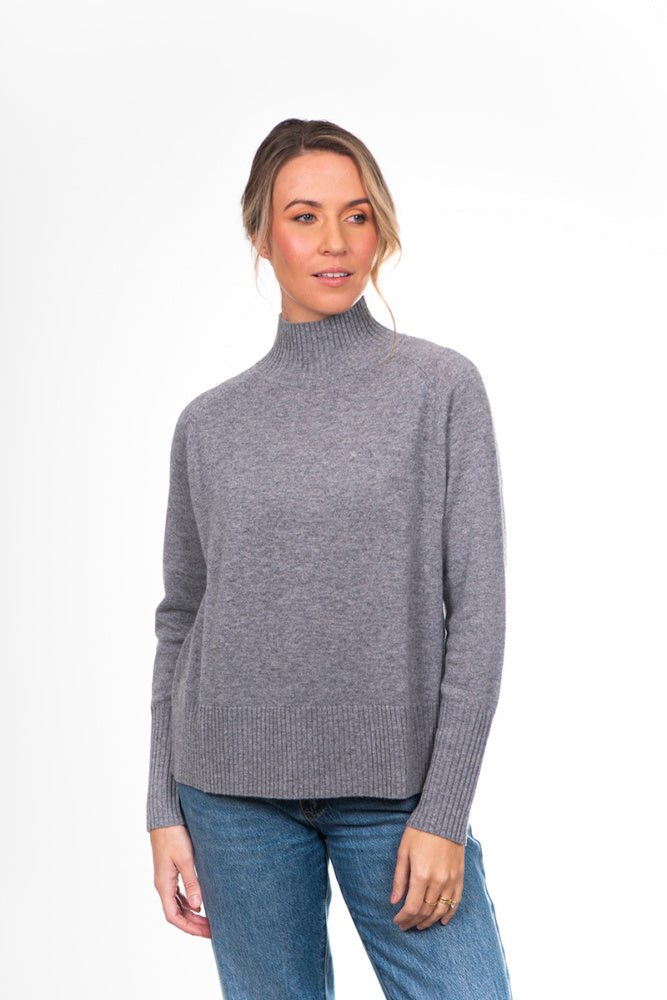 Pure Cashmere Raglan Sleeve High Neck Pullover