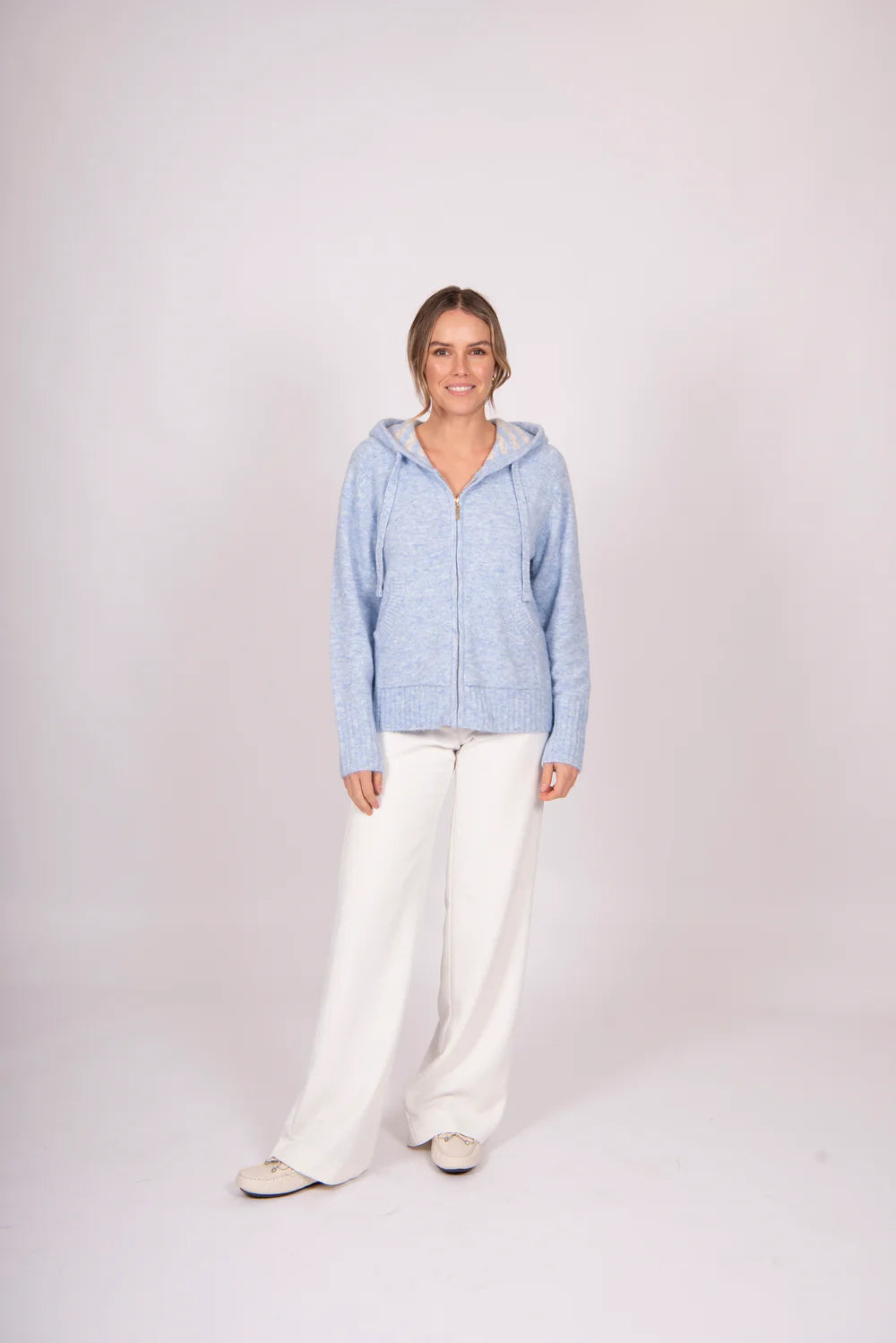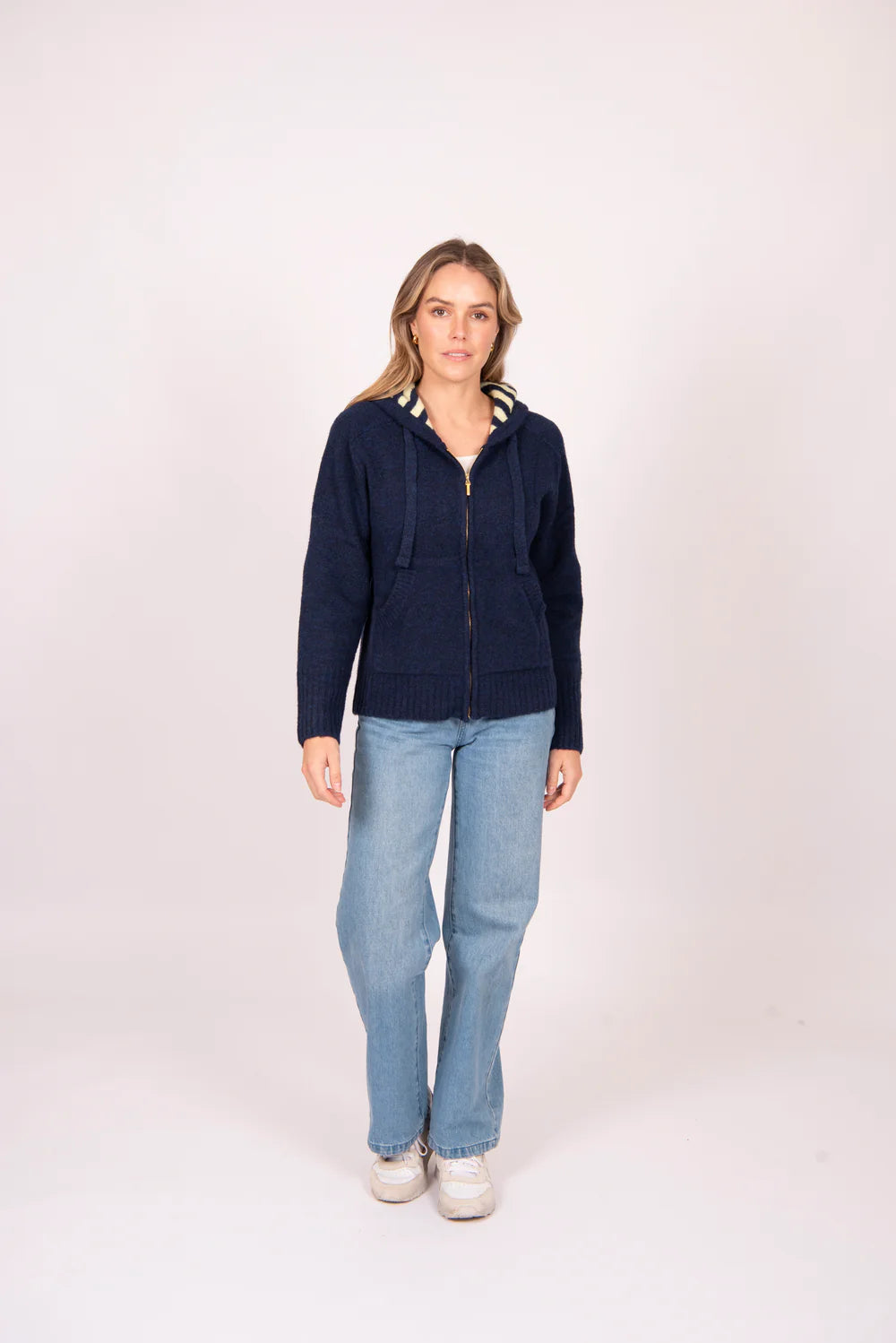 • Classic zip hoodie with saddle shoulders, a hood with contrast stripe lining, adjustable drawcord, pouch pockets, and rib trims for a modern twist