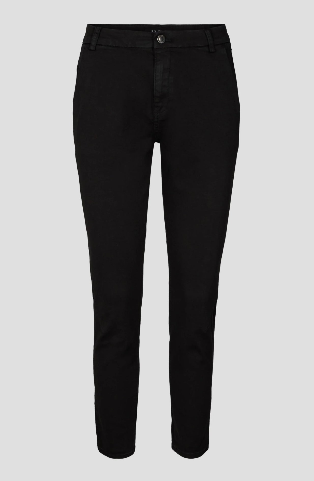 Karmey is a pair of white chinos in a soft stretchy quality. Besides zip and button closure on the front, side and back pockets as well as a cropped fit. Karmey is provided with stitching details at the knee. Details that endow the chinos with a cool and casual look.