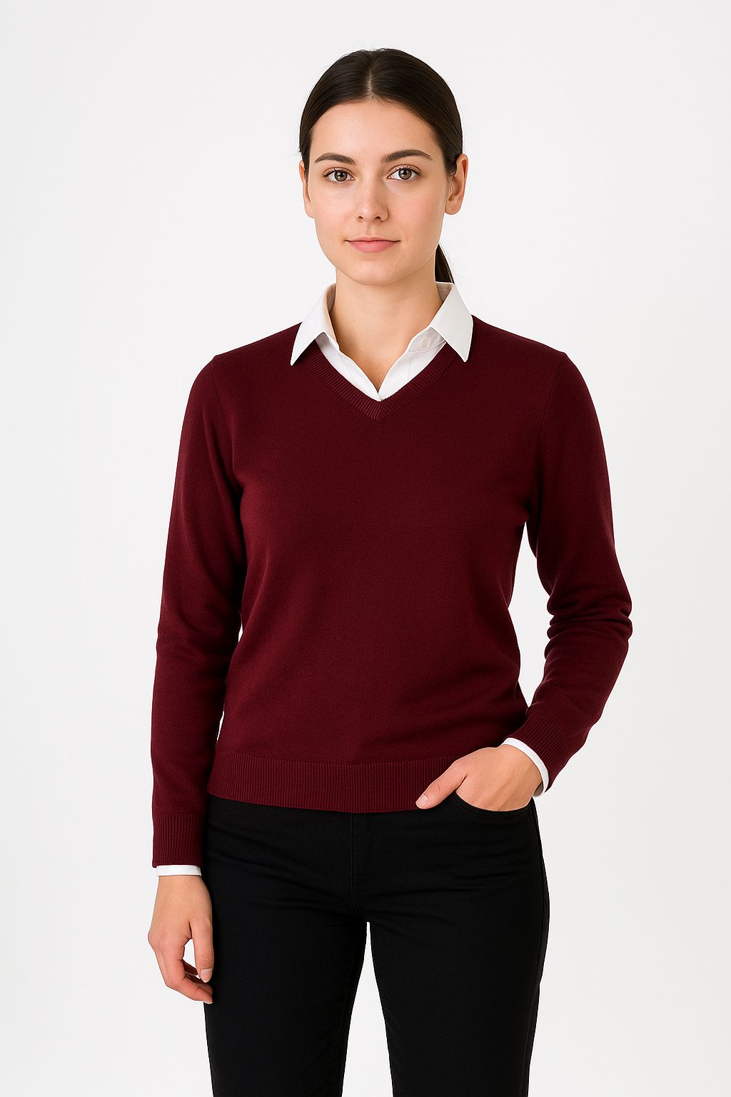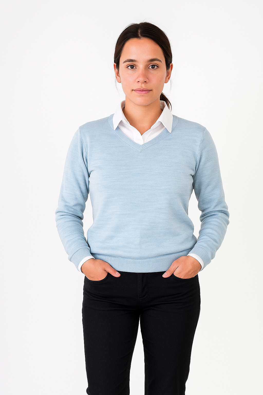 ANSETT Pure merino wool machine washable Fine Gage V-Neck Jumper