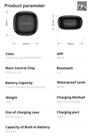 3. How to start: Use the included charging case to charge COLMI Ring. The heart rate light will light up to indicate successful startup. Then you can use the APP Qring to connect the COLMI Ring.