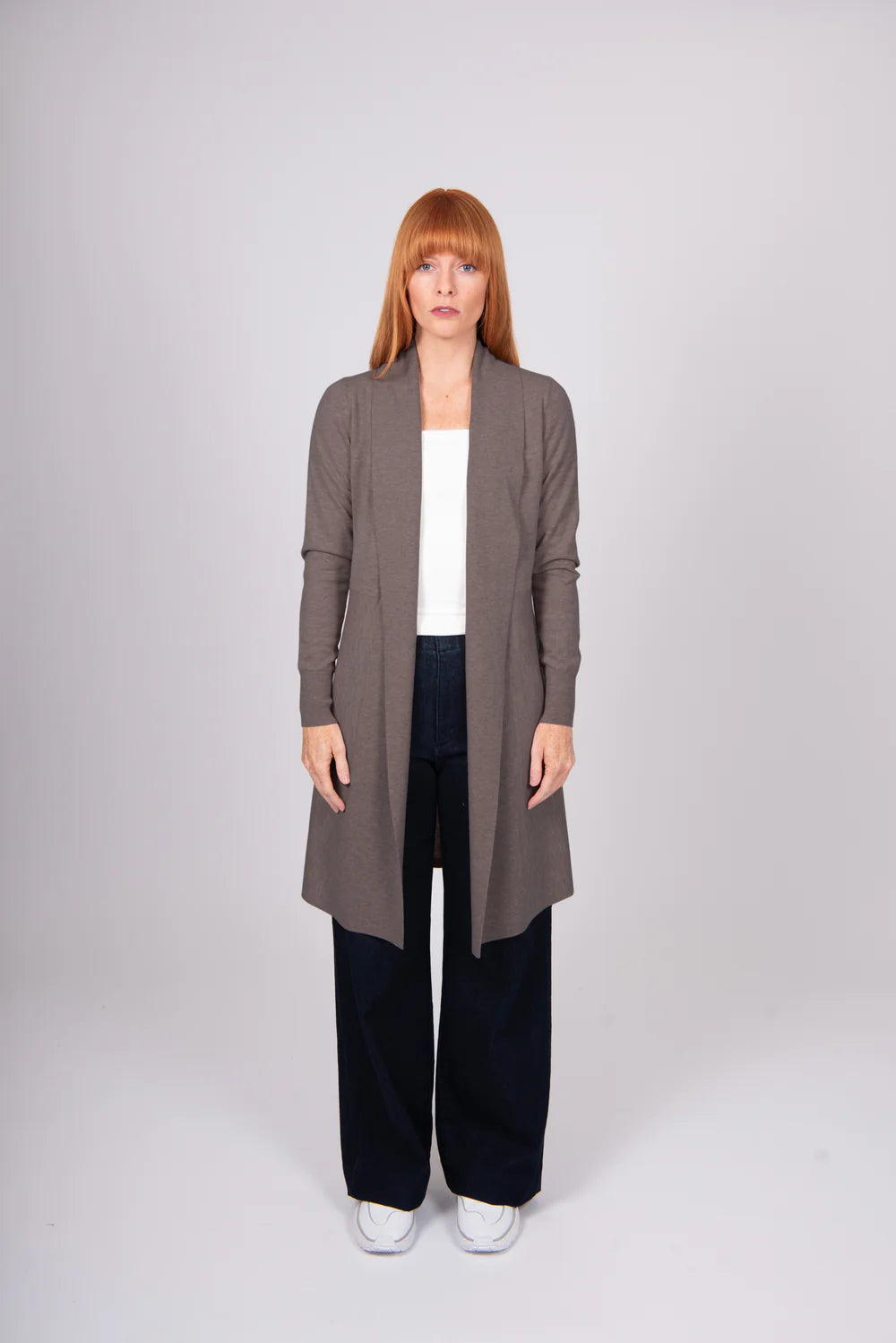 A refined layering piece with timeless appeal, the Essential Edge to Edge Cardigan by Bridge & Lord offers effortless elegance and supreme comfort. Crafted from a luxurious blend of premium Australian Merino wool and the softest Mongolian cashmere, this cardigan drapes beautifully without fastenings for a clean, minimalist look. Lightweight yet warm, it’s perfect for year-round styling — whether you’re dressing up for the office or embracing cozy weekend wear.