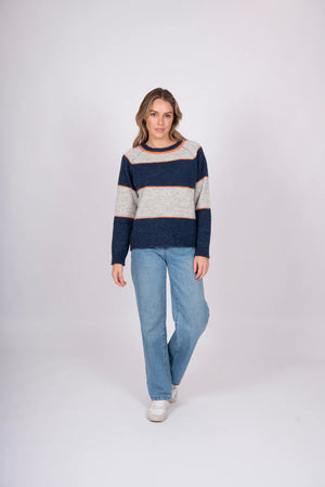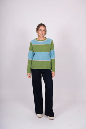 • Stylish block stripe pullover with a custom-knitted design made from a soft and supple mohair wool blend