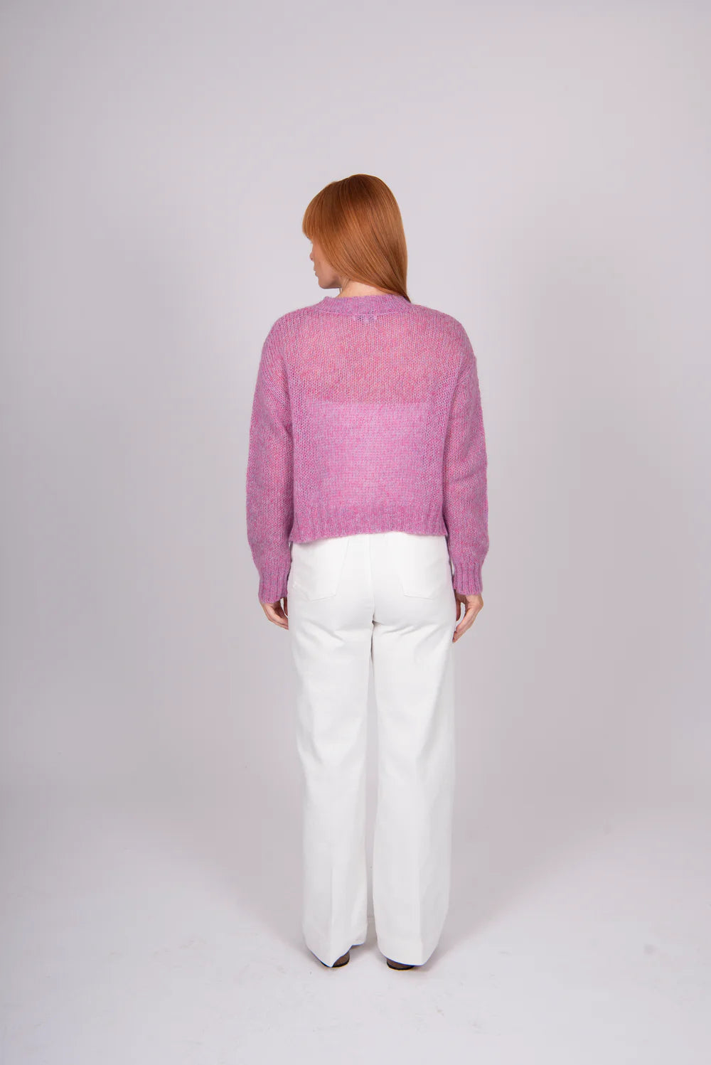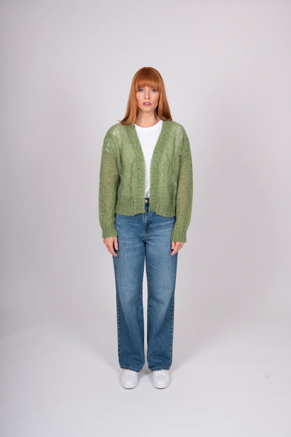 • Mohair blend knit with chunky cable detail for a soft, light, and cozy feel