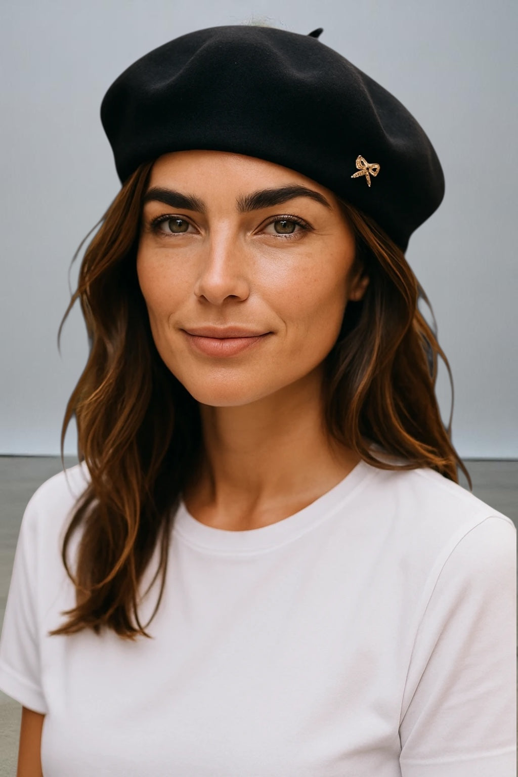 The Pure Cashmere Beret with a Bow is a refined and elegant accessory that blends classic French-inspired fashion with luxurious comfort. Here’s a detailed description: