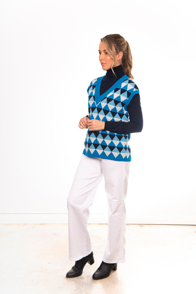 Whether paired with a crisp shirt or layered over a turtleneck, the Triangle Jacquard Vest delivers effortless elegance with a modern twist.